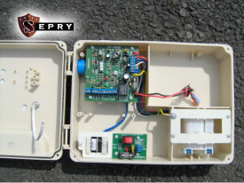 Gabinete plástico hermético, cumple con la norma IP55 con espacio para batería de 4 a 7Amp 12 volt. |